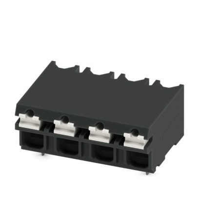 Leiterplattenklemme, Nennstrom: 17,5 A, Bemessungsspannung (III/2): 320 V, Nennquerschnitt: 1,5 mm², Anzahl der Potenziale: 4, Anzahl der Reihen: 1, Polzahl pro Reihe: 4, Artikelfamilie: SPT 1,5/..-H-SMD, Rastermaß: 5 mm, Anschlussart: Push-in-Federanschluss, Montage: SMD-Löten, Anschlussrichtung Leiter/Platine: 0 °, Farbe: schwarz, Pin-Layout: Lineare Pad-Geometrie, Anzahl der Lötpins pro Potenzial: 1, Verpackungsart: Gurt in 44 mm Breite