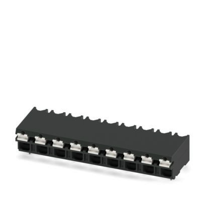 Leiterplattenklemme, Nennstrom: 17,5 A, Bemessungsspannung (III/2): 320 V, Nennquerschnitt: 1,5 mm², Anzahl der Potenziale: 9, Anzahl der Reihen: 1, Polzahl pro Reihe: 9, Artikelfamilie: SPT 1,5/..-H-SMD, Rastermaß: 5,08 mm, Anschlussart: Push-in-Federanschluss, Montage: SMD-Löten, Anschlussrichtung Leiter/Platine: 0 °, Farbe: schwarz, Pin-Layout: Lineare Pad-Geometrie, Anzahl der Lötpins pro Potenzial: 1, Verpackungsart: Gurt in 88 mm Breite