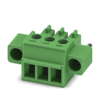 Leiterplattenstecker, Nennquerschnitt: 1,5 mm², Farbe: grün, Nennstrom: 8 A, Bemessungsspannung (III/2): 160 V, Kontaktoberfläche: Sn, Kontaktart: Buchse, Anzahl der Potenziale: 3, Anzahl der Reihen: 1, Polzahl: 3, Anzahl der Anschlüsse: 3, Artikelfamilie: MC 1,5/..-STF, Rastermaß: 3,81 mm, Anschlussart: Schraubanschluss mit Zughülse, Schraubenangriffsform: L Längsschlitz, Anschlussrichtung Leiter/Platine: 0 °, Stecksystem: COMBICON MC 1,5, Verriegelung: Schraubverriegelung, Befestigungsart: Schraubflansch, Verpackungsart: verpackt im Karton