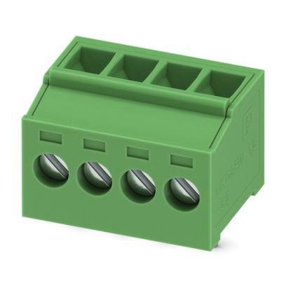 Leiterplattenklemme, Nennstrom: 12 A, Bemessungsspannung (III/2): 160 V, Nennquerschnitt: 1,5 mm², Anzahl der Potenziale: 4, Anzahl der Reihen: 1, Polzahl pro Reihe: 4, Artikelfamilie: MKDSFW 1,5, Rastermaß: 3,5 mm, Anschlussart: Schraubanschluss mit Zughülse, Schraubenangriffsform: L Längsschlitz, Montage: Wellenlöten, Anschlussrichtung Leiter/Platine: 90 °, Farbe: grün, Pin-Layout: Lineares Pinning, Pinlänge [P]: 3,5 mm, Anzahl der Lötpins pro Potenzial: 1, Verpackungsart: verpackt im Karton