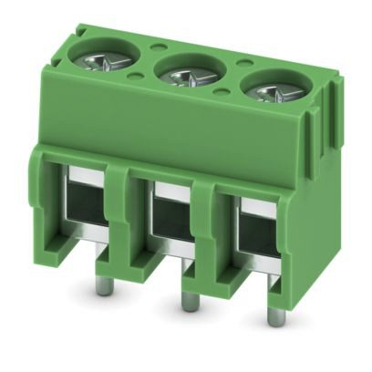 Leiterplattenklemme, Nennstrom: 17,5 A, Bemessungsspannung (III/2): 400 V, Nennquerschnitt: 1,5 mm², Anzahl der Potenziale: 3, Anzahl der Reihen: 1, Polzahl pro Reihe: 3, Artikelfamilie: PT 1,5/..-H, Rastermaß: 5 mm, Anschlussart: Schraubanschluss mit Drahtschutzbügel, Montage: Wellenlöten, Anschlussrichtung Leiter/Platine: 0 °, Farbe: grün, Pin-Layout: Lineares Pinning, Pinlänge [P]: 3,5 mm, Anzahl der Lötpins pro Potenzial: 1, Verpackungsart: verpackt im Karton