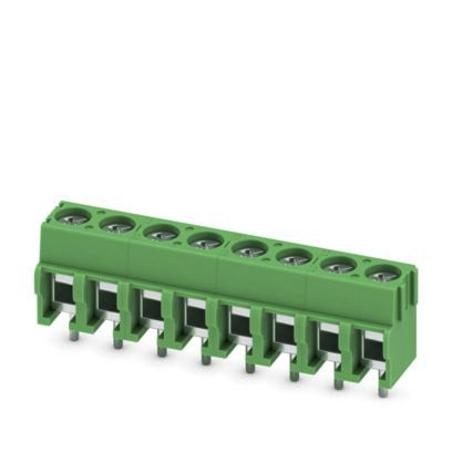 Leiterplattenklemme, Nennstrom: 17,5 A, Bemessungsspannung (III/2): 400 V, Nennquerschnitt: 1,5 mm², Anzahl der Potenziale: 8, Anzahl der Reihen: 1, Polzahl pro Reihe: 8, Artikelfamilie: PT 1,5/..-H, Rastermaß: 5 mm, Anschlussart: Schraubanschluss mit Drahtschutzbügel, Montage: Wellenlöten, Anschlussrichtung Leiter/Platine: 0 °, Farbe: grün, Pin-Layout: Lineares Pinning, Pinlänge [P]: 3,5 mm, Anzahl der Lötpins pro Potenzial: 1, Verpackungsart: verpackt im Karton