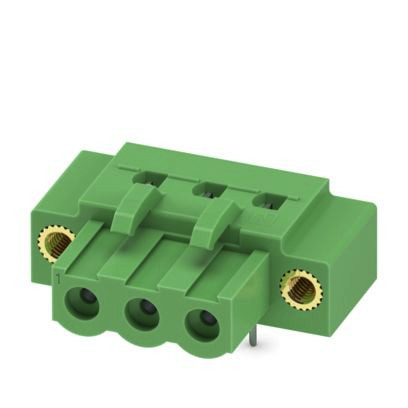 Leiterplatten-Grundleiste, Nennquerschnitt: 2,5 mm², Farbe: grün, Nennstrom: 16 A, Bemessungsspannung (III/2): 320 V, Kontaktoberfläche: Sn, Kontaktart: Buchse, Anzahl der Potenziale: 3, Anzahl der Reihen: 1, Polzahl: 3, Anzahl der Anschlüsse: 3, Artikelfamilie: IC 2,5 HC/..-GF, Rastermaß: 5,08 mm, Montage: Wellenlöten, Pin-Layout: Lineares Pinning, Pinlänge [P]: 3,5 mm, Anzahl der Lötpins pro Potenzial: 2, Stecksystem: COMBICON MSTB 2,5 HC, Ausrichtung Steckgesicht: Standard, Verriegelung: Schraubverriegelung, Befestigungsart: Gewindeflansch, Verpackungsart: verpackt im Karton