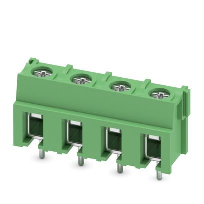Leiterplattenklemme, Nennstrom: 32 A, Bemessungsspannung (III/2): 800 V, Nennquerschnitt: 2,5 mm², Anzahl der Potenziale: 4, Anzahl der Reihen: 1, Polzahl pro Reihe: 4, Artikelfamilie: PT 2,5/..-H, Rastermaß: 7,5 mm, Anschlussart: Schraubanschluss mit Drahtschutzbügel, Montage: Wellenlöten, Anschlussrichtung Leiter/Platine: 0 °, Farbe: grün, Pin-Layout: Lineares Pinning, Pinlänge [P]: 4,1 mm, Anzahl der Lötpins pro Potenzial: 1, Verpackungsart: verpackt im Karton