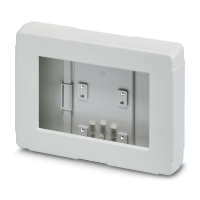 Display-Gehäuse 7" lichtgrau, Fenster mittig, Front eben, für Batteriepack bestehend aus zwei Halbschalen, mit Schrauben und Batteriepackkontakten