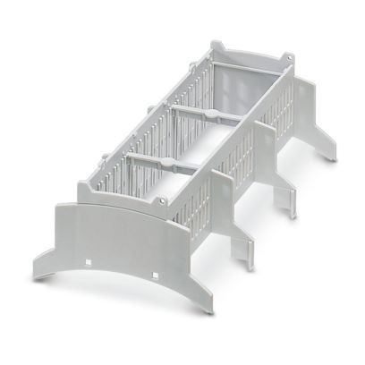 Tragschienengehäuse für den Einsatz in Installationsverteilern nach DIN 43880, Gehäuseoberteil (U22) mit Lüftungsschlitzen, Einbautiefe Anschlusstechnik: 22,35 mm, Breite: 161,6 mm, Höhe: 89,7 mm, Tiefe: 54,85 mm, Farbe: lichtgrau (ähnlich RAL 7035)