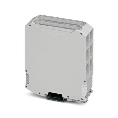 Tragschienengehäuse, Komplettgehäuse mit Metallfußriegel, hohe Bauform, ohne Lüftungsschlitze, Breite: 35,2 mm, Höhe: 99 mm, Tiefe: 113,65 mm, Farbe: lichtgrau (ähnlich RAL 7035), Querverbindung: Tragschienen-Busverbinder (optional), Polzahl Querverbinder: 5