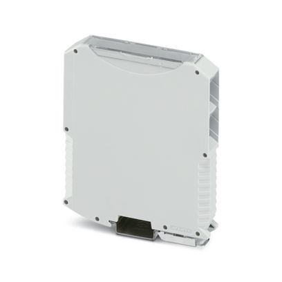 Tragschienengehäuse, Komplettgehäuse mit Metallfußriegel, hohe Bauform, ohne Lüftungsschlitze, Breite: 17,6 mm, Höhe: 99 mm, Tiefe: 113,65 mm, Farbe: lichtgrau (ähnlich RAL 7035), Querverbindung: Tragschienen-Busverbinder (optional), Polzahl Querverbinder: 5