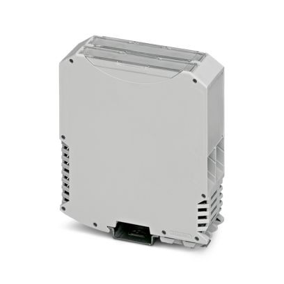 Tragschienengehäuse, Komplettgehäuse mit Metallfußriegel, hohe Bauform, mit Lüftungsschlitzen, Breite: 35,2 mm, Höhe: 99 mm, Tiefe: 113,65 mm, Farbe: lichtgrau (ähnlich RAL 7035), Querverbindung: Tragschienen-Busverbinder (optional), Polzahl Querverbinder: 5