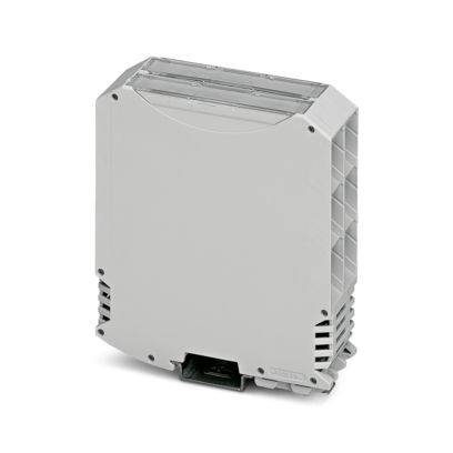 Tragschienengehäuse, Komplettgehäuse mit Metallfußriegel, hohe Bauform, mit Lüftungsschlitzen, Breite: 35,2 mm, Höhe: 99 mm, Tiefe: 113,65 mm, Farbe: lichtgrau (ähnlich RAL 7035), Querverbindung: Tragschienen-Busverbinder (optional), Polzahl Querverbinder: 5