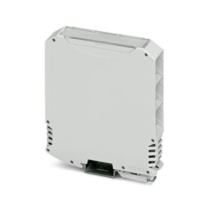 Tragschienengehäuse, Komplettgehäuse mit Metallfußriegel, hohe Bauform, mit Lüftungsschlitzen, Breite: 22,6 mm, Höhe: 99 mm, Tiefe: 113,65 mm, Farbe: lichtgrau (ähnlich RAL 7035), Querverbindung: Tragschienen-Busverbinder (optional), Polzahl Querverbinder: 5
