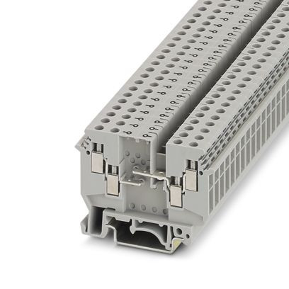 Bauelementreihenklemme, zum Einbau von selbst wählbaren Bauelementen, Nennspannung: 630 V, Nennstrom: 32 A, Anzahl der Anschlüsse: 4, Anschlussart: Schraubanschluss, Bemessungsquerschnitt: 4 mm², 1. Etage, Querschnitt: 0,2 mm² - 6 mm², Montageart: NS 35/7,5, NS 35/15, NS 32, Farbe: grau