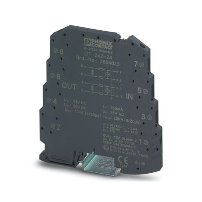 Überspannungsschutz im einteiligen 6,2 mm breiten Tragschienenmodul für zwei erdpotenzialfrei betriebene Signalkreise in 2-Leitertechnik. Geprüft nach Zündschutzarten in Ex-Bereichen: Ex ia IIC / Ex iaD. HART-fähig.