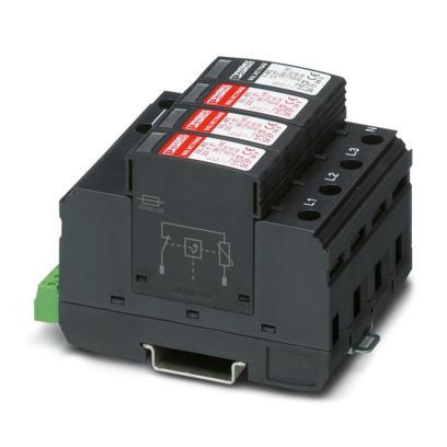 Überspannungsableiter bestehend aus Basiselement und Schutzsteckern, zur Montage auf NS 35/7,5, Ausführung: 230 V AC - IT-System, 3 + 1-Schaltung.
