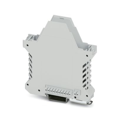 Tragschienengehäuse, Gehäuseunterteil mit Metallfußriegel, mit FE-Kontakt, hohe Bauform, mit Lüftungsschlitzen, Breite: 22,6 mm, Höhe: 99 mm, Tiefe: 107,3 mm, Farbe: lichtgrau (ähnlich RAL 7035), Querverbindung: integrierter Busverbinder, Polzahl Querverbinder: 10+2, Busverbinder: 10 parallele Kontakte, 2 serielle Kontakte