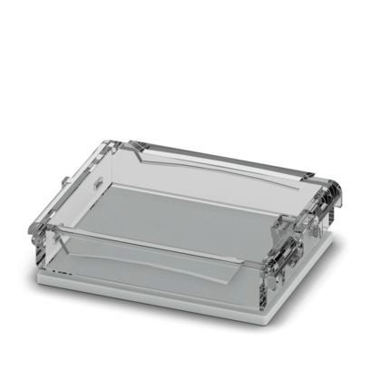 Tragschienengehäuse für den Einsatz in Installationsverteilern nach DIN 43880, transparenter Schwenkdeckel, plombierbar, inklusive Einlegeblende, Breite: 35,6 mm, Höhe: 45 mm, Tiefe: 8 mm, Farbe: lichtgrau (ähnlich RAL 7035)