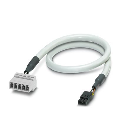 Konfektioniertes, geschirmtes Rundkabel; Steuerung: PLC logic (Verbindung zum Tragschienen-Busverbinder); Anschluss 1: COMBICON-Steckverbinder (1x 3-polig); Anschluss 2: COMBICON-Steckverbinder (1x 5-polig); Kabellänge: 0,3 m