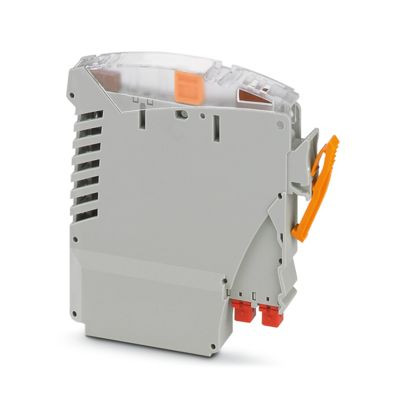 Sicherungsmodul für VIP I/O-Marshalling-Basiselemente mit austauschbaren 0,5-A-Sicherungen im Feldgeräte-Versorgungspfad und im Signalpfad. Integrierte Testpunkte und ein Trennmesser erlauben die unterbrechungsfreie Signalmessung. HART-transparent.