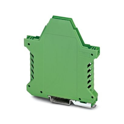 Tragschienengehäuse, Gehäuseunterteil mit Metallfußriegel, hohe Bauform, mit Lüftungsschlitzen, Breite: 12,6 mm, Höhe: 99 mm, Tiefe: 107,3 mm, Farbe: grün (ähnlich RAL 6021), Querverbindung: ohne Busverbinder, Polzahl Querverbinder: nicht relevant