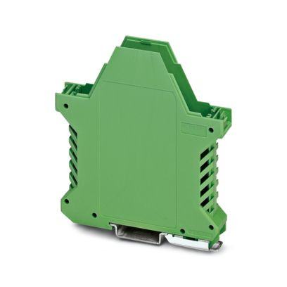 Tragschienengehäuse, Gehäuseunterteil mit Metallfußriegel, mit FE-Kontakt, hohe Bauform, mit Lüftungsschlitzen, Breite: 17,6 mm, Höhe: 99 mm, Tiefe: 107,3 mm, Farbe: grün (ähnlich RAL 6021), Querverbindung: ohne Busverbinder, Polzahl Querverbinder: nicht relevant
