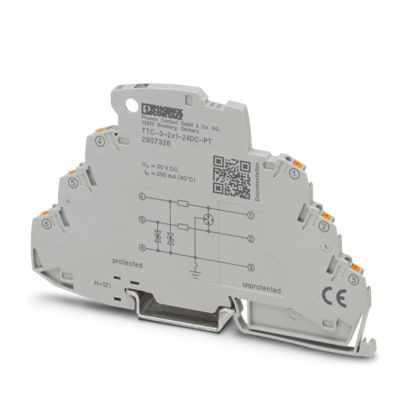 Überspannungsschutz für zwei Signaladern mit gemeinsamem Bezugspotenzial, z. B. Digital IN/OUT. In sicherheitsgerichteten Kreisen bis SIL 3 einsetzbar.
