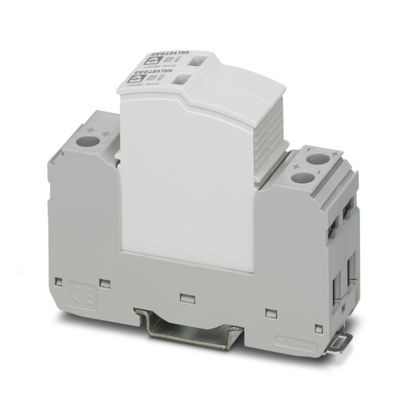 Steckbarer Überspannungsableiter, gem. Typ 2 / Class II, für DC-Stromquellen mit linearer Betriebscharakteristik, mit Fernmeldekontakt.