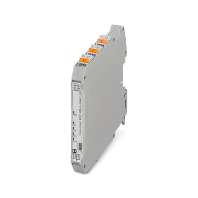 NAMUR-Trennschaltverstärker zum Betrieb von Näherungsinitiatoren und Schaltern. Die Signale werden pro Kanal über 1 Transistorausgang (passiv) zur Steuerungsebene übertragen. Anzahl der Kanäle: 2, Standardkonfiguration, 3-Wege-Trennung, Leitungsfehlererkennung, Safety Integrity Level (SIL, IEC 61508): 2, Systematic Capability: 3, Push-in-Anschluss