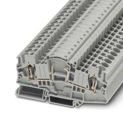 Bauelementreihenklemme, Werden mehrere Diodenklemmen auf der Tragschiene aneinandergereiht muss eine Distanzplatte dazwischen gesetzt werden., zum Einbau von selbst wählbaren Bauelementen, Nennspannung: 500 V, Nennstrom: 30 A, Anschlussart: Zugfederanschluss, Bemessungsquerschnitt: 6 mm², Querschnitt: 0,2 mm² - 10 mm² , Farbe: grau