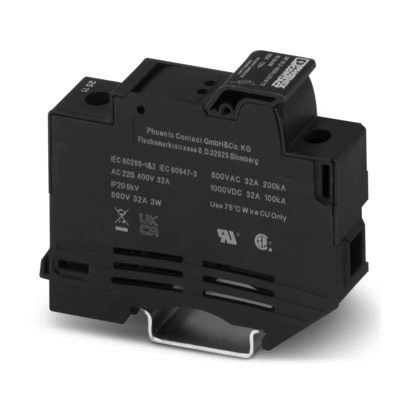 Sicherungshalter, Art der Sicherung: Keramik, Sicherungstyp: 10,3 x 38 mm, Nennspannung: 72 V, Nennstrom: 32 A, Polzahl: 1, Anschlussart: Schraubanschluss, Bemessungsquerschnitt: 16 mm², Querschnitt: 1 mm²- 16 mm², Montageart: NS 35/7,5, NS 35/15, Farbe: schwarz