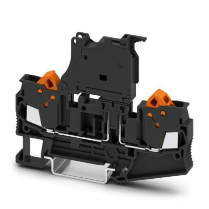 Sicherungsreihenklemme, Art der Sicherung: Glas / Keramik / ..., Sicherungstyp: G / 5 x 20, Nennspannung: 24 V, Nennstrom: 6,3 A, Anschlussart: Schnellanschluss, 1. Etage, Bemessungsquerschnitt: 1,5 mm², Querschnitt: 0,5 mm²- 2,5 mm², Montageart: NS 35/7,5, NS 35/15, Farbe: schwarz