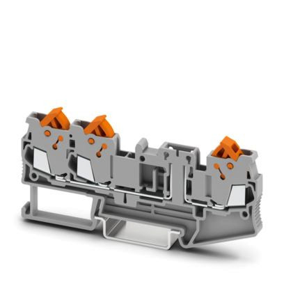 Trennklemme, Nennspannung: 400 V, Nennstrom: 17,5 A, Anzahl der Anschlüsse: 3, Anschlussart: Schnellanschluss, Bemessungsquerschnitt: 1,5 mm², 1. Etage, Querschnitt: 0,25 mm² - 1,5 mm², Montageart: NS 35/7,5, NS 35/15, Farbe: grau