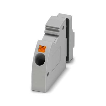 Durchführungsklemme, Anschlussart: Push-in-Federanschluss, Flachsteckanschluss, Polzahl: 1, Belastungsstrom: 18 A, Querschnitt: 0,2 mm² - 4 mm², Anschlussrichtung des Leiters zur Steckrichtung: 45 °, Breite: 8,1 mm, Farbe: grau