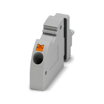 Durchführungsklemme, Anschlussart: Push-in-Federanschluss, Lötanschluss, Polzahl: 1, Belastungsstrom: 32 A, Querschnitt: 0,2 mm² - 4 mm², Anschlussrichtung des Leiters zur Steckrichtung: 45 °, Breite: 8,1 mm, Farbe: grau