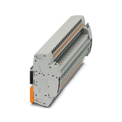 Prüfsteckleiste, Nennspannung: 400 V, Anschlussart: Push-in-Anschluss, 1. Etage, Bemessungsquerschnitt: 6 mm², Querschnitt: 0,5 mm² - 10 mm², Montageart: NS 35/7,5, NS 35/7,5, Farbe: grau