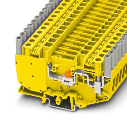 Messwandler-Trennklemme, mit Gleitsteg, Nennspannung: 500 V, Nennstrom: 41 A, Anschlussart: Schraubanschluss, 1. Etage, Bemessungsquerschnitt: 6 mm², Querschnitt: 0,5 mm² - 10 mm² , Montageart: NS 35/7,5, NS 35/15, NS 32, Farbe: gelb