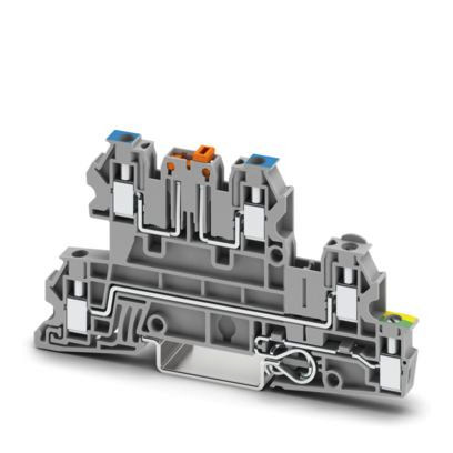 Installations-Schutzleiterklemme, Nennspannung: 400 V, Nennstrom: 21 A, Schraubanschluss, 1. und 2. Etage, Bemessungsquerschnitt: 2,5 mm², Querschnitt: 0,2 mm² - 4 mm², Schraubanschluss, 3. Etage, Bemessungsquerschnitt: 4 mm², Querschnitt: 0,2 mm² - 4 mm², Montageart: NS 35/7,5, NS 35/15, Farbe: grau