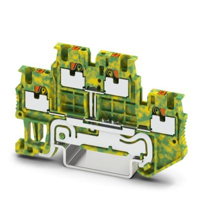 Schutzleiter-Doppelstockklemme, Anzahl der Anschlüsse: 4, Anschlussart: Push-in-Anschluss, 1. und 2. Etage, Querschnitt: 0,14 mm² - 1,5 mm², Montageart: NS 35/7,5, NS 35/15, Farbe: grün-gelb