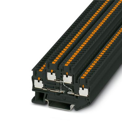 Bauelementreihenklemme, mit integrierter Diode 1N4007, Nennstrom: 0,5 A, Anzahl der Anschlüsse: 4, Anschlussart: Push-in-Anschluss, Bemessungsquerschnitt: 2,5 mm², 1. und 2. Etage, Querschnitt: 0,14 mm² - 4 mm², Montageart: NS 35/7,5, NS 35/15, Farbe: schwarz