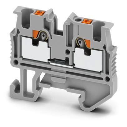 Minidurchgangsklemme, Nennspannung: 500 V, Nennstrom: 17,5 A, Anzahl der Anschlüsse: 2, Anschlussart: Push-in-Anschluss, Bemessungsquerschnitt: 1,5 mm², 1. Etage, Querschnitt: 0,14 mm² - 1,5 mm², Montageart: NS 15, Farbe: grau