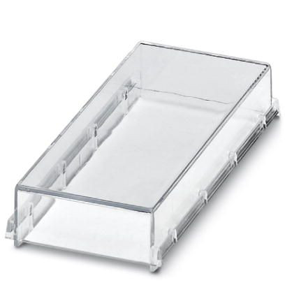 Abdeckhaube, zur berührungs- und staubgeschützten Kapselung der Bauteile, in klarer Ausführung. Höhe: 15 mm, Breite: 90 mm
