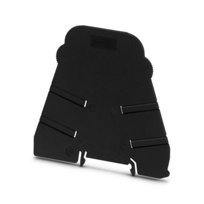 Isolationsplatte, 2 mm dick, ist am Anfang und Ende jeder PLC-Klemmenleiste zu setzen. Weiterhin dient sie zur: optischen Trennung von Gruppen, sicheren Trennung unterschiedlicher Spannungen benachbarter PLC-INTERFACEs nach DIN VDE 0106-101, Trennung