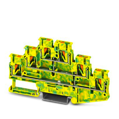 Schutzleiter-Reihenklemme, Anzahl der Anschlüsse: 6, Anschlussart: Push-in-Anschluss, 1., 2. und 3. Etage, Querschnitt: 0,14 mm² - 4 mm², Montageart: NS 35/7,5, NS 35/15, Farbe: grün-gelb