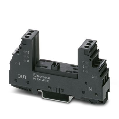 Basiselement für Schutzstecker PT mit Schutzschaltung für zwei Leiter einseitig geerdeter Signalkreise. Integrierter Gasableiter als Grobschutz zwischen GND und PE. Montage auf NS 35/7,5 und NS 35/15, Gehäusebreite: 17,5 mm.