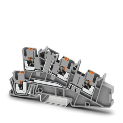 mit einem Außenleiter-Anschluss L und einer Trennzone Installationsetagenklemme, Strom und Spannung werden durch den eingesetzten Stecker bestimmt., Nennspannung: 400 V, Thermischer Dauerstrom Ith: 24 A, Push-in-Anschluss, Bemessungsquerschnitt: 2,5 mm², Querschnitt: 0,14 mm² - 4 mm², Push-in-Anschluss, Bemessungsquerschnitt: 4 mm², Querschnitt: 0,14 mm² - 4 mm², Montageart: NS 35/7,5, NS 35/15, Farbe: grau
