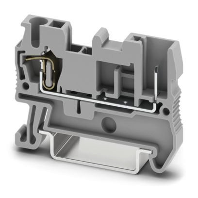 Durchgangsklemme, Nennspannung: 500 V, Nennstrom: 24 A, Anzahl der Anschlüsse: 2, Anschlussart: Zugfeder- / Steckanschluss, Bemessungsquerschnitt: 2,5 mm², 1. Etage Anschluss links, Querschnitt: 0,08 mm² - 4 mm², 1. Etage Anschluss rechts, Montageart: NS 35/7,5, NS 35/15, Farbe: grau