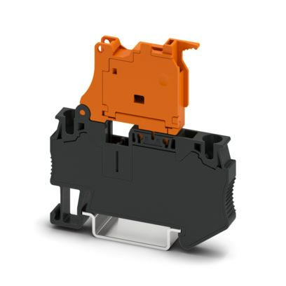 Hebeltrennklemme, Nennspannung: 500 V, Nennstrom: 20 A, Anschlussart: Zugfederanschluss, Bemessungsquerschnitt: 4 mm², Querschnitt: 0,08 mm² - 6 mm², Montage: NS 35/7,5, NS 35/15, Farbe: schwarz/orange