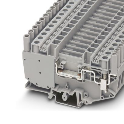 Durchgangsklemme, Nennspannung: 500 V, Nennstrom: 41 A, Anzahl der Anschlüsse: 2, Anschlussart: Schraubanschluss, Bemessungsquerschnitt: 6 mm², 1. Etage, Querschnitt: 0,5 mm² - 10 mm², Montageart: NS 35/7,5, NS 35/15, NS 32, Farbe: grau