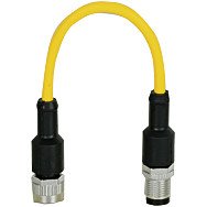 Kabel, Adapter, IP68, M12 Buchsenstecker, schwarz, gerade, 8-polig, A-codiert auf M12 Stiftstecker, schwarz, gerade, 5-polig, A-codiert,PUR, 0,1 m, 5× 0,25 mm², gelb, zum Anschluss eines Empfängers derBasisversionen der Sensoren PSEN op4F<(>&<)>/1 und PSEN op4H<(>&<)>/1(Lichtgitter)an PSS67 und PDP67.