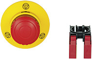 PITestop, Not-Halt/Kontaktblock Set, bestehend aus Not-Halt-Taster großmit Not-Halt Symbol und Logo und Kontaktblock mit Überwachung, 2n/c, mitFederkraftklemmen.