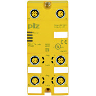 Dezentraler Passiv-Verteiler zum Anschluss von PSENcode, PSENslock undPSENini an ein Pilz-Steuerungssystem, maximal 4 Sensoren, SchutzartIP67, Edelstahlanschlüssen.